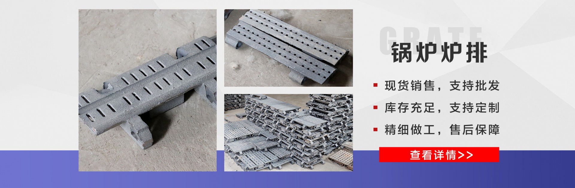 麗新機械配件廠位于“江北水城”之稱的聊城。公司主要銷售:鍋爐爐門,爐篦子,爐排片,鍋爐爐排,省煤器管,鍋爐風帽,鍋爐配件等多種產品,公司堅持以市場為導向、以誠實守信為經營理念,竭誠為廣大客戶服務!  爐排是鍋爐或工業爐中堆置固體燃料并使之有效燃燒的部件。整個爐排主要包括框架和爐排片兩個部分。爐排片通常用鑄鐵制造,組裝后片與片之間保持必要的通風縫隙,并且往往還在爐排下邊設置可以調節風量的分隔的通風室,以便空氣通過縫隙進入燃料層燃燒。燒盡后的灰渣用人工或機械方法排出。爐排有固定式、移動式、往復式、振動式和下飼式等類型。  鍋爐爐排操作實現了機械化,減輕了司爐工的勞動強度。快裝出廠,到使用現場后,裝接閥門儀表,鼓、引風機、煙風管道、省煤器、除塵器、出渣機。上煤機及水電路等即可運行,且具有起動生火快等特點。  公司憑借豐富的規格品種,過硬的質量,合理的價格,完善的服務,不斷地受到新老用戶及業內人士的肯定和信任,我們本著及用戶之所及,想用戶之所想的服務宗旨不斷地拼搏,進取,在此對多年來支持我們的各行各業的新老朋友表示由衷的感謝!  我公司的理念:“誠信、合作、互利、雙贏”!以最大的努力滿足客戶的需求。...